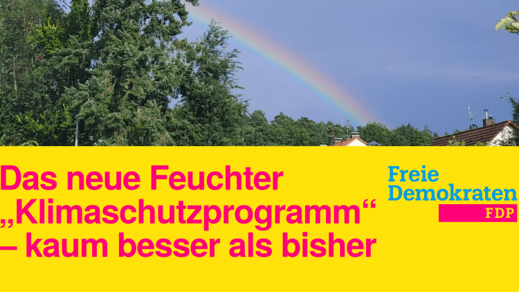 Die FDP hat in den letzten beiden Jahren in den Gremien des Marktes Feucht wiederholt auf eine grundlegende Überarbeitung dieses „Klimaschutzprogramms“ gedrungen, da das Programm bisher von großen Mitnahmeeffekten geprägt war. Dies lag vor allem daran, dass private Bau- und Gartenmaßnahmen vom Markt Feucht mitbezahlt wurden, die auch ohne Förderung umgesetzt worden wären oder – im Zeitpunkt der Förderzusage – sogar schon umgesetzt waren. Ziel der neuen Richtlinie zum Klimaschutzprogramm des Marktes Feucht ist es, diese Missstände zu beseitigen und damit einen sorgsameren Umgang mit Steuergeldern zu erreichen.